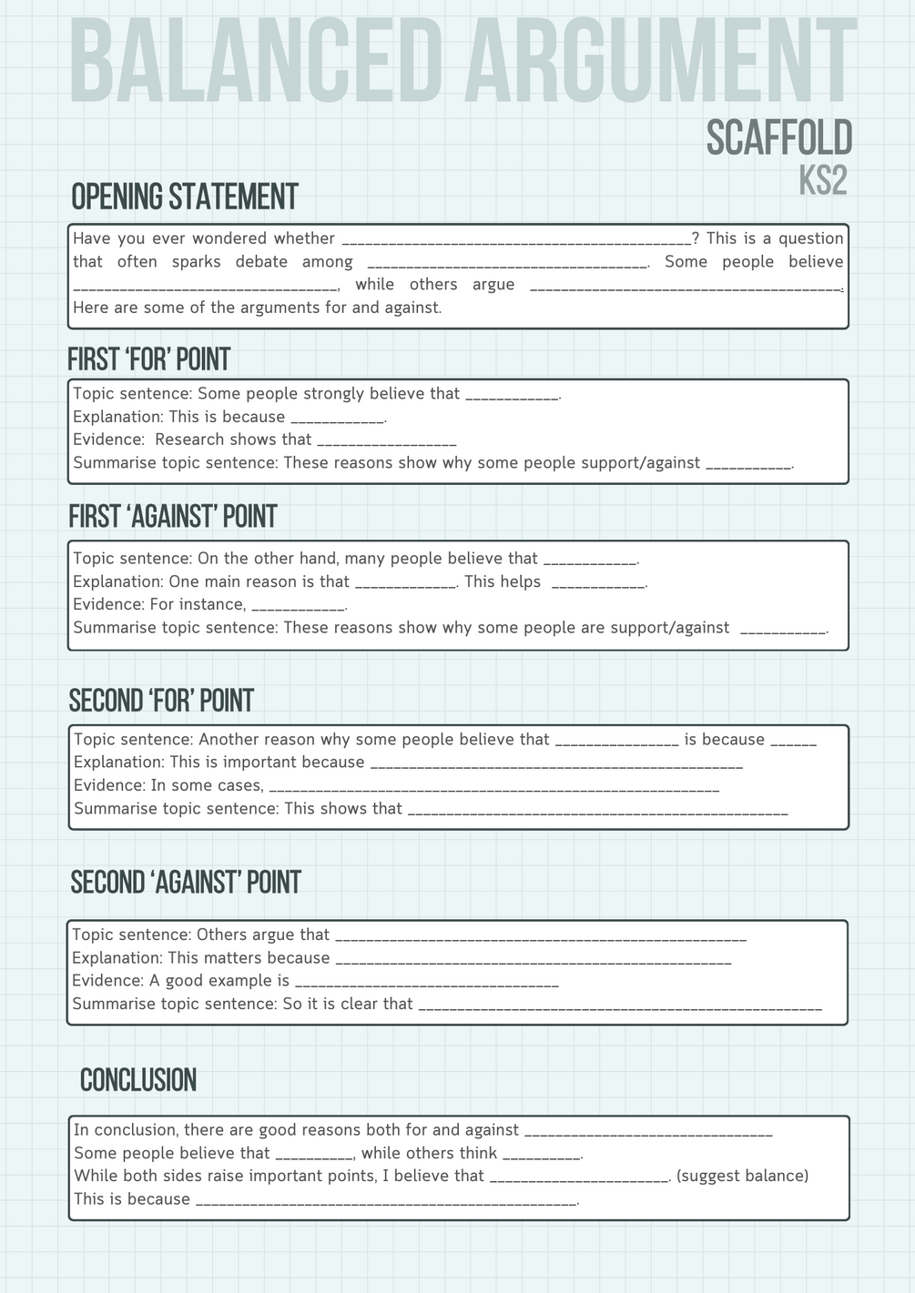 Balanced Argument Writing Scaffold - KS2